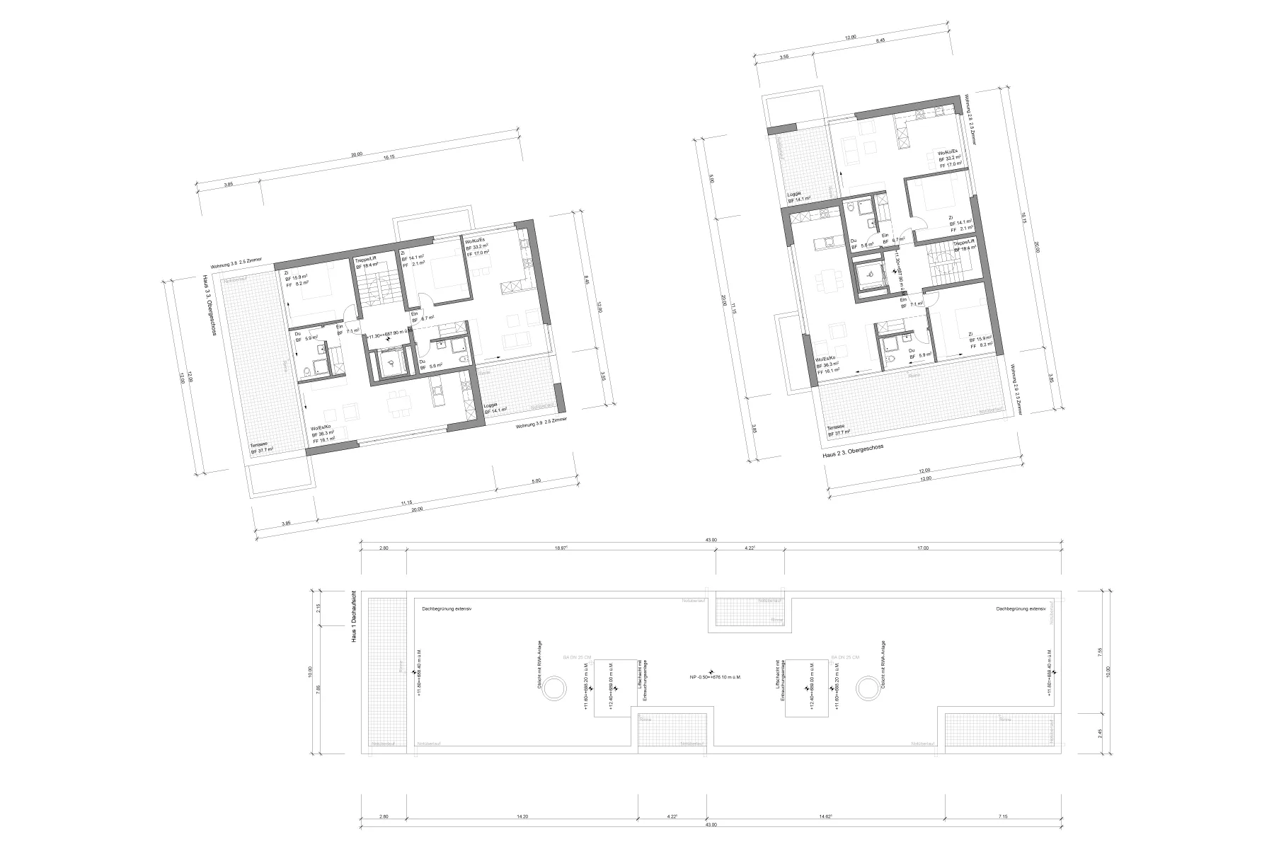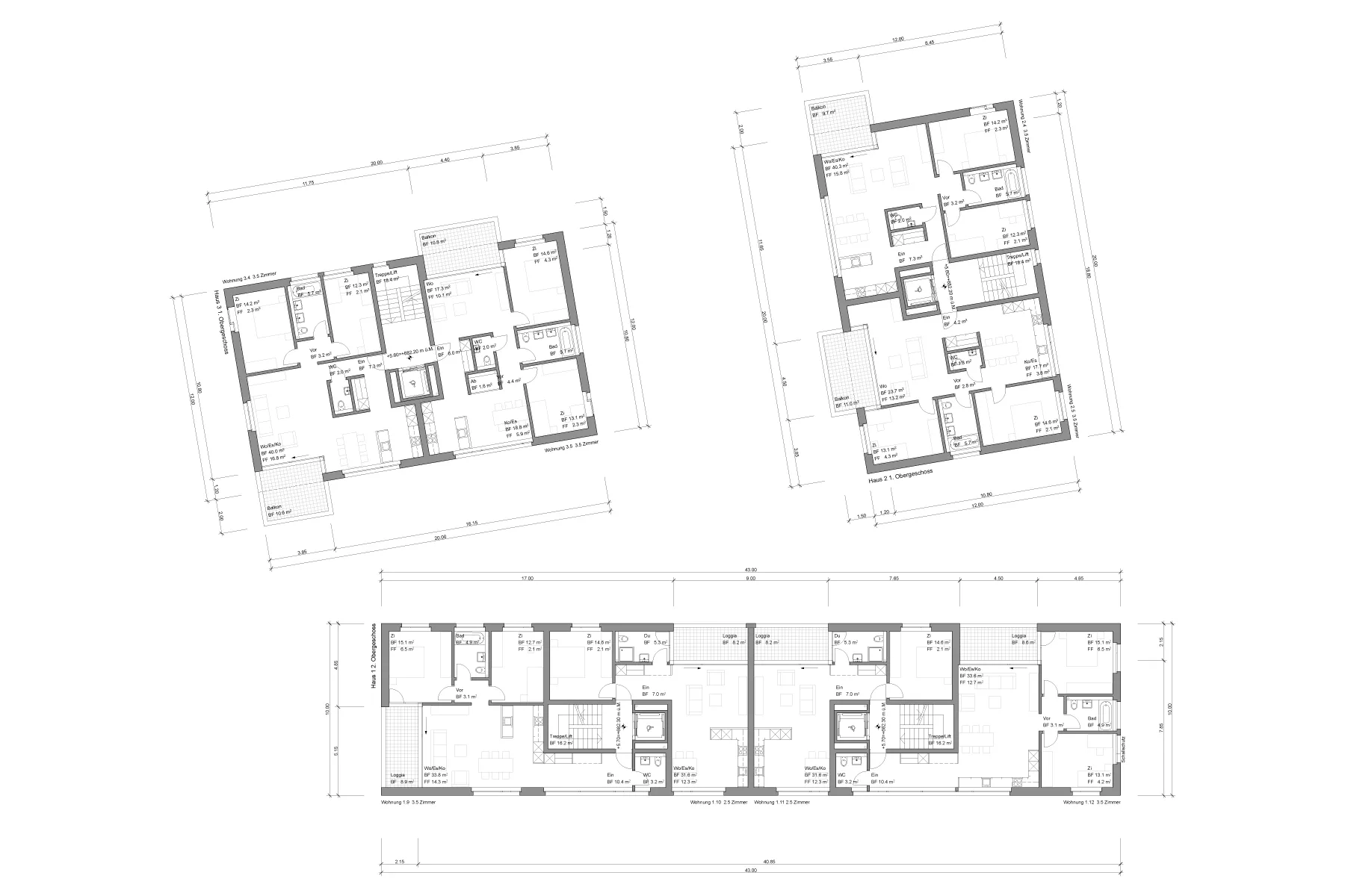 Durch einen mehrseitigen Siedlungsbezug in den Grundrissen und den privaten Aussenräumen, entsteht Orientierung und räumliche Spannung. Auf diese Weise entsteht eine unverwechselbare Wohnbausiedlung mit Gewerbeanteilen. Klare räumliche Situationen werden dem Bewohner Identität geben.